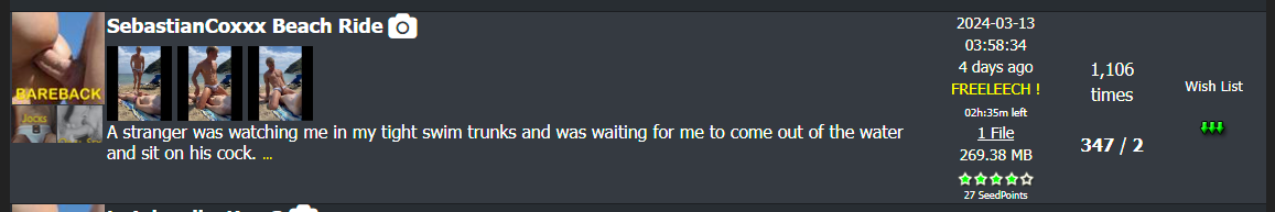 • 105GB of videos freeleech for 24h