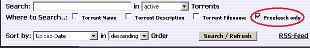 搜索条件 'Freeleech only' 已添加如图下。。