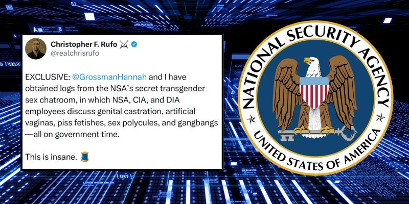 - NSA chat room, with 100 employees from CIA, DIA etc., had explicit discussions of kink & radical surgeries.