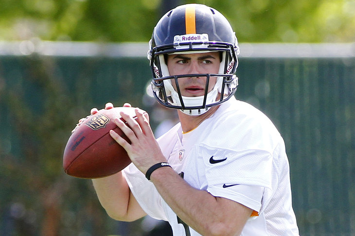 The second thing I noticed was a sentence scribbled on his hand. As my cohort for the day, SB Nation NFL editor Ryan Van Bibber, asked questions about Jones' new home in Pittsburgh and backing up Ben Roethlisberger, I stole glances at the words. I only made out "Philippians" and a couple numbers: He had written a passage from the New Testament on his hand.