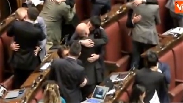 A group of Italian lawmakers interrupted a parliamentary debate on Friday to engage in a same-sex kissing demonstration in support of expanding the country’s anti-discrimination law to include the LGBT community.