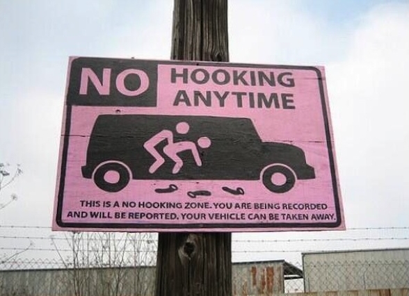 Ever heard of "hooking"? Beware! This is a non-hooking zone . . . . are those discarded condoms on the ground?