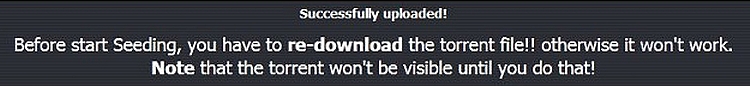 Una volta riempiti tutti i campi clicca su Upload Torrent. Se tutti è andato a buon fine, vedrai un messaggio di risposta.